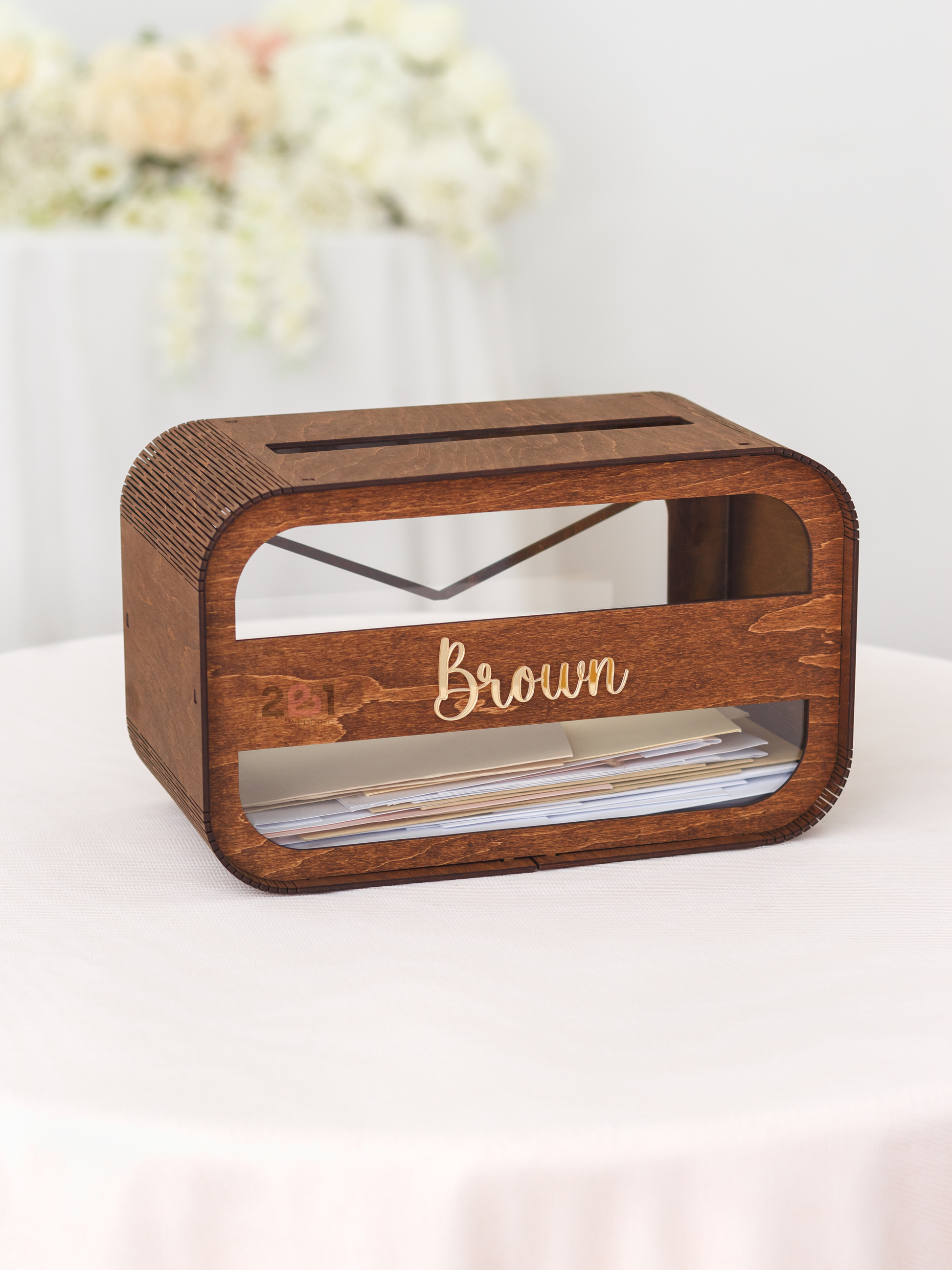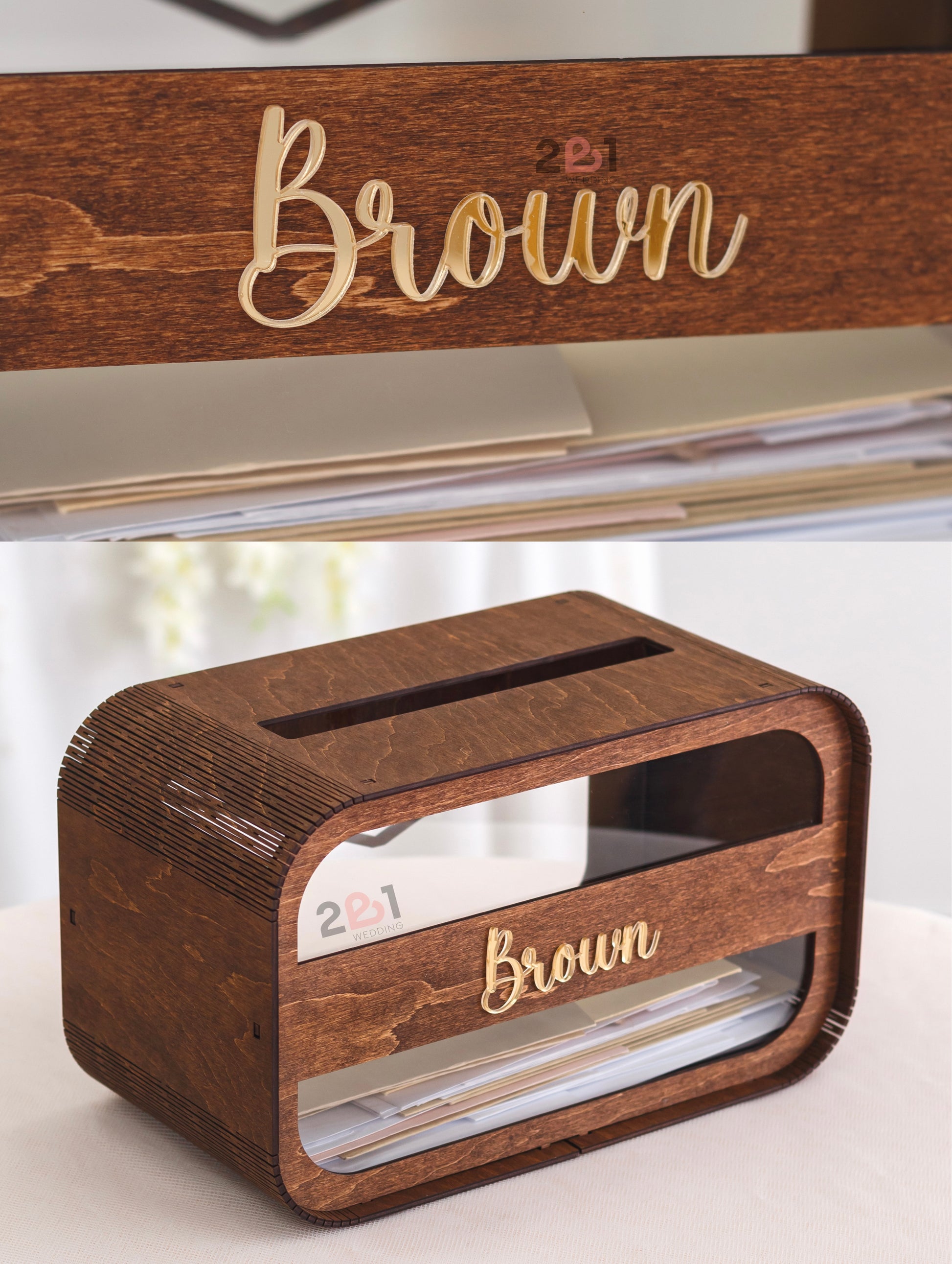 Our personalized Wood Card Box in rustic style will help you to complement and decorate your wedding.