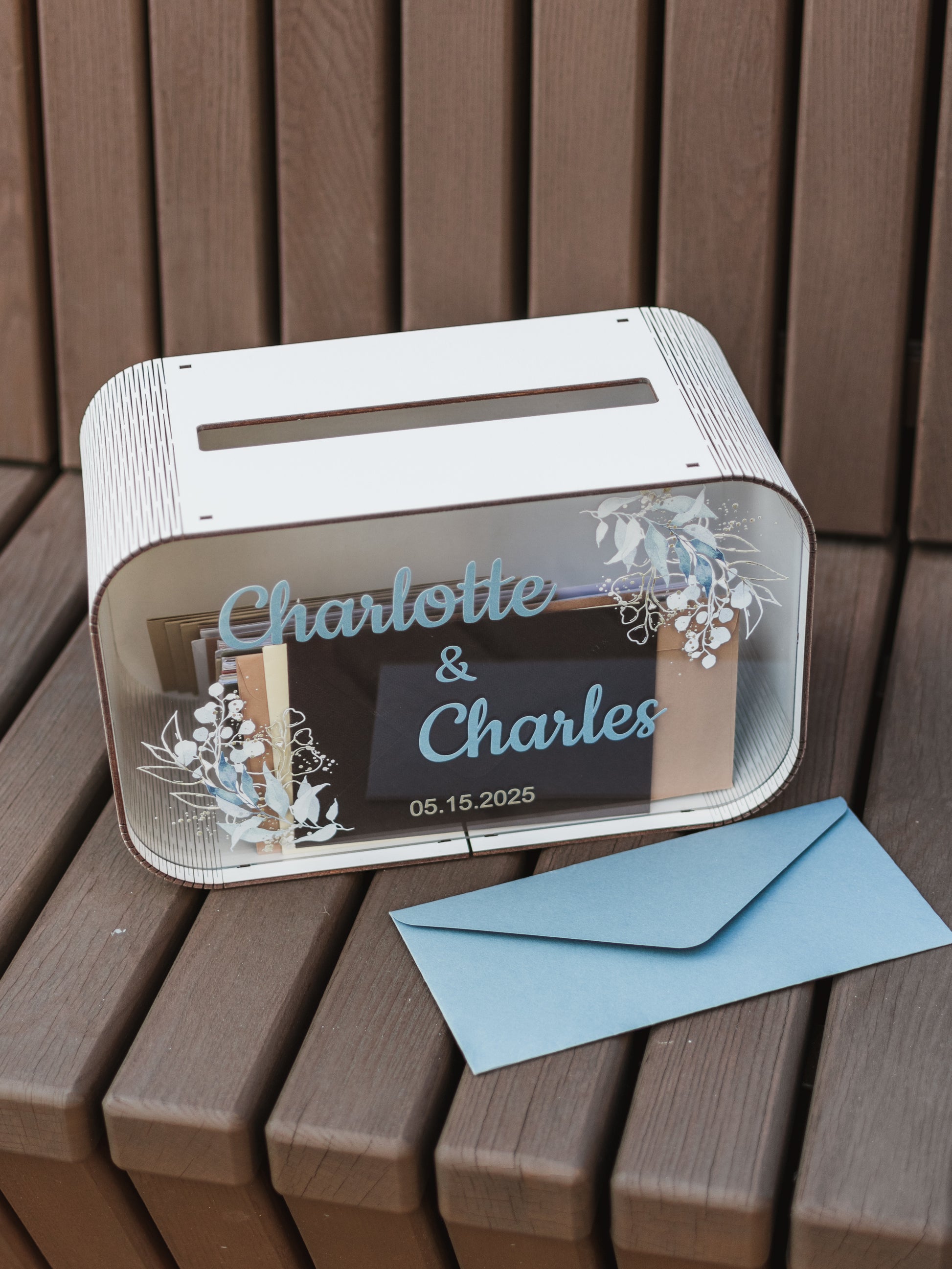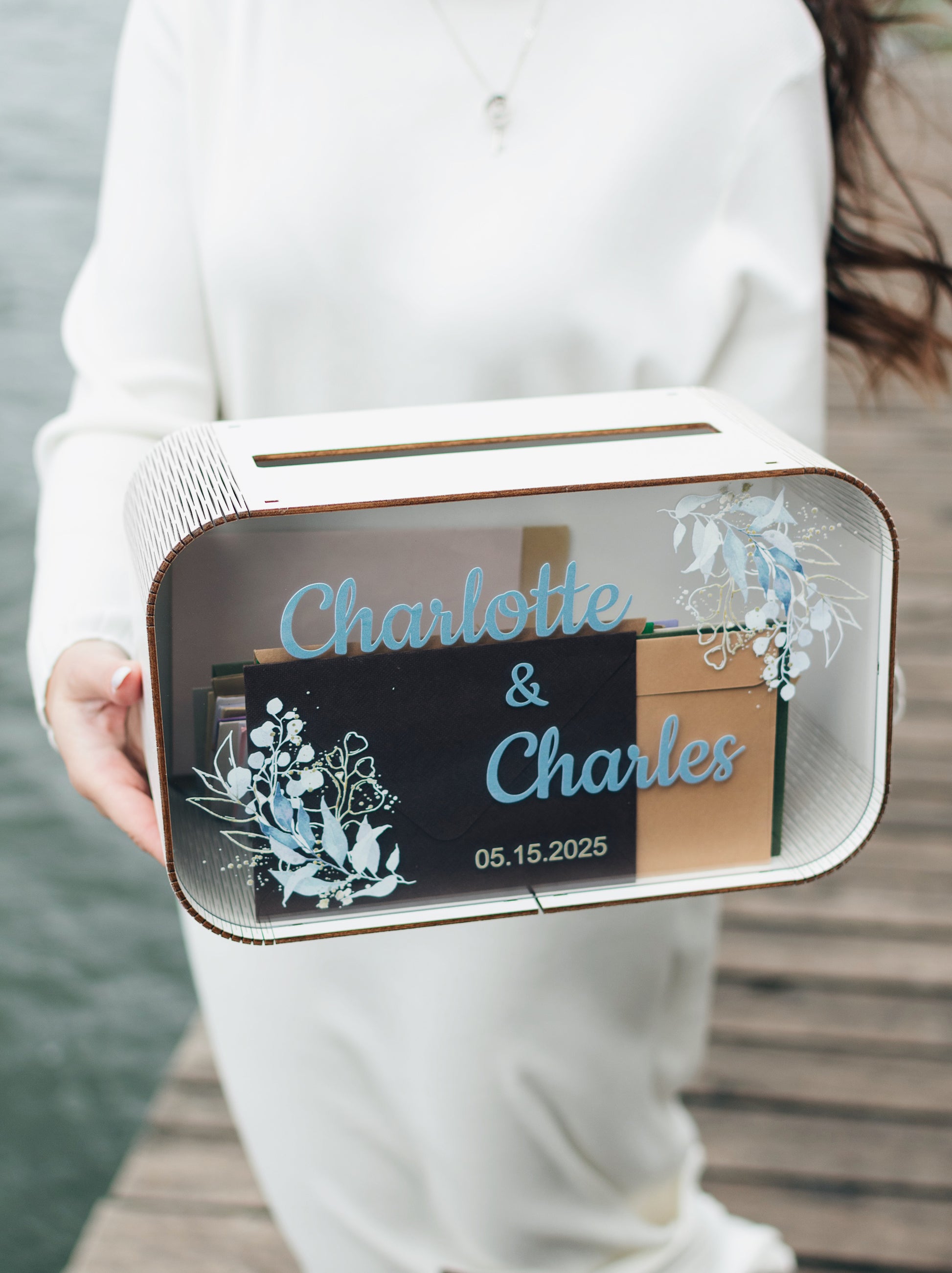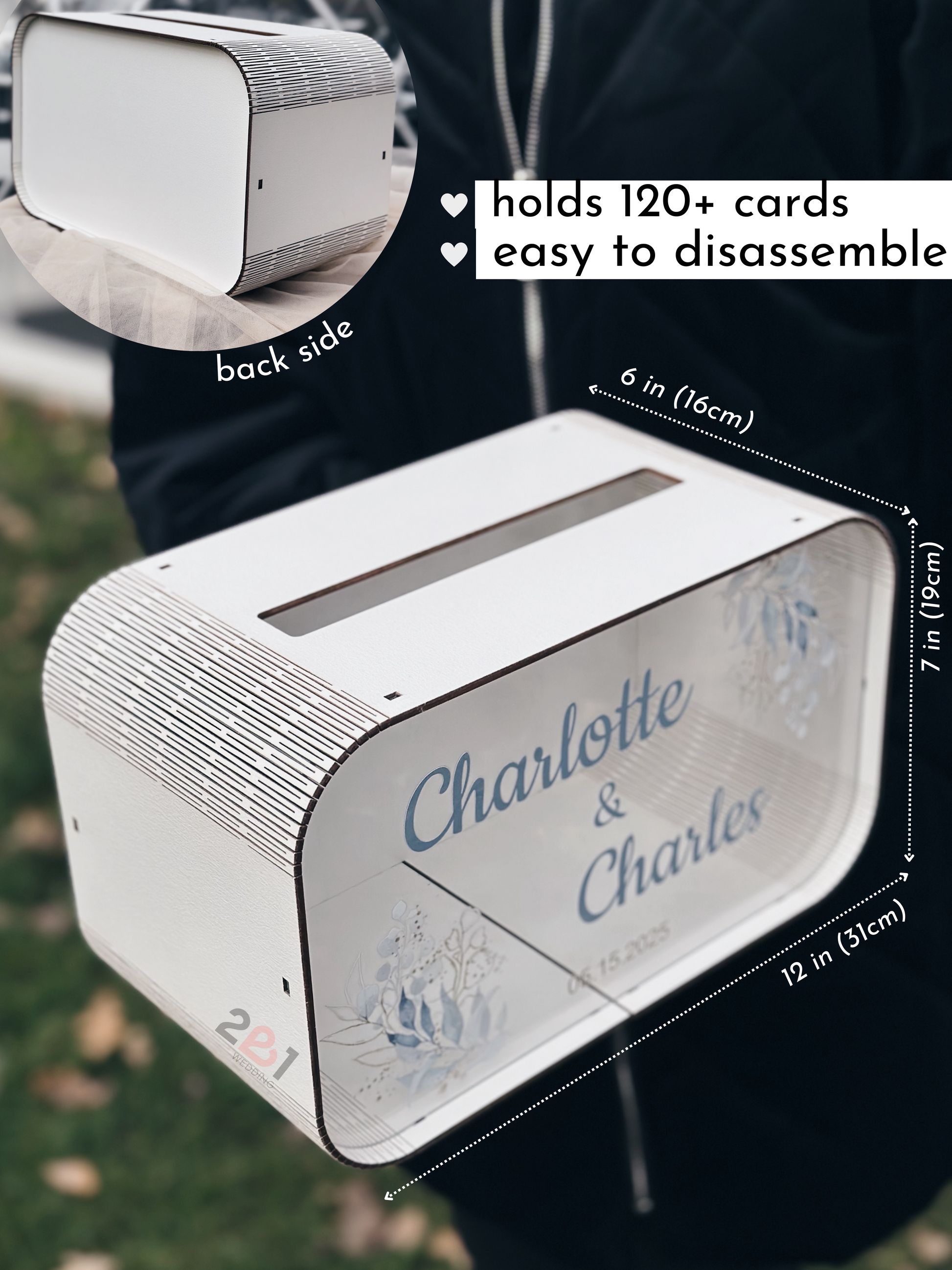 Our personalized Wood Card Box in rustic style will help you to complement and decorate your wedding.