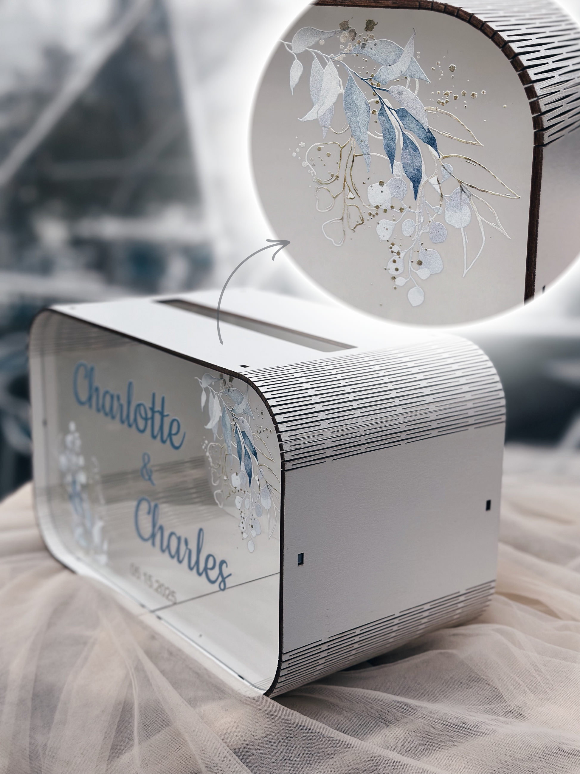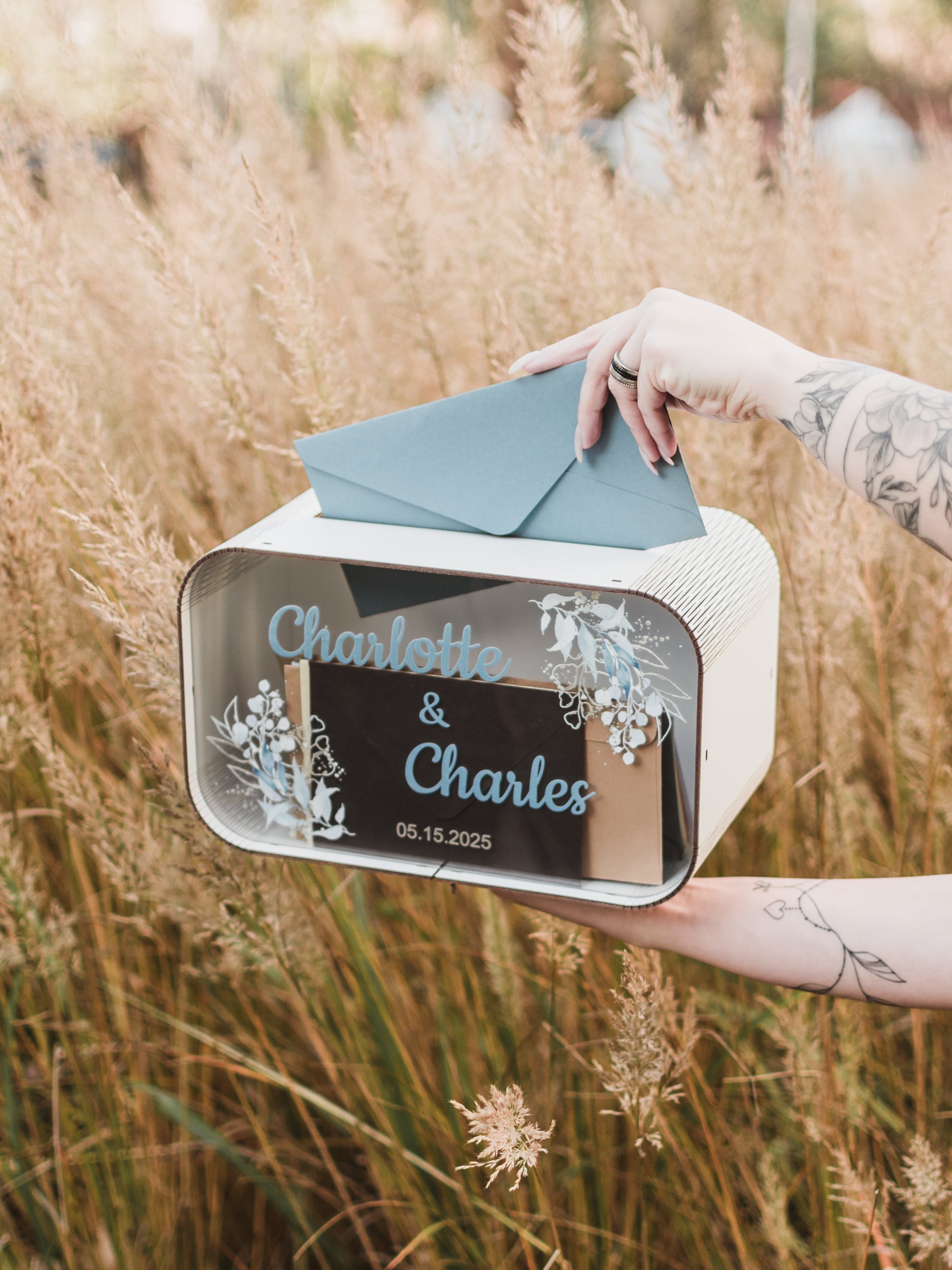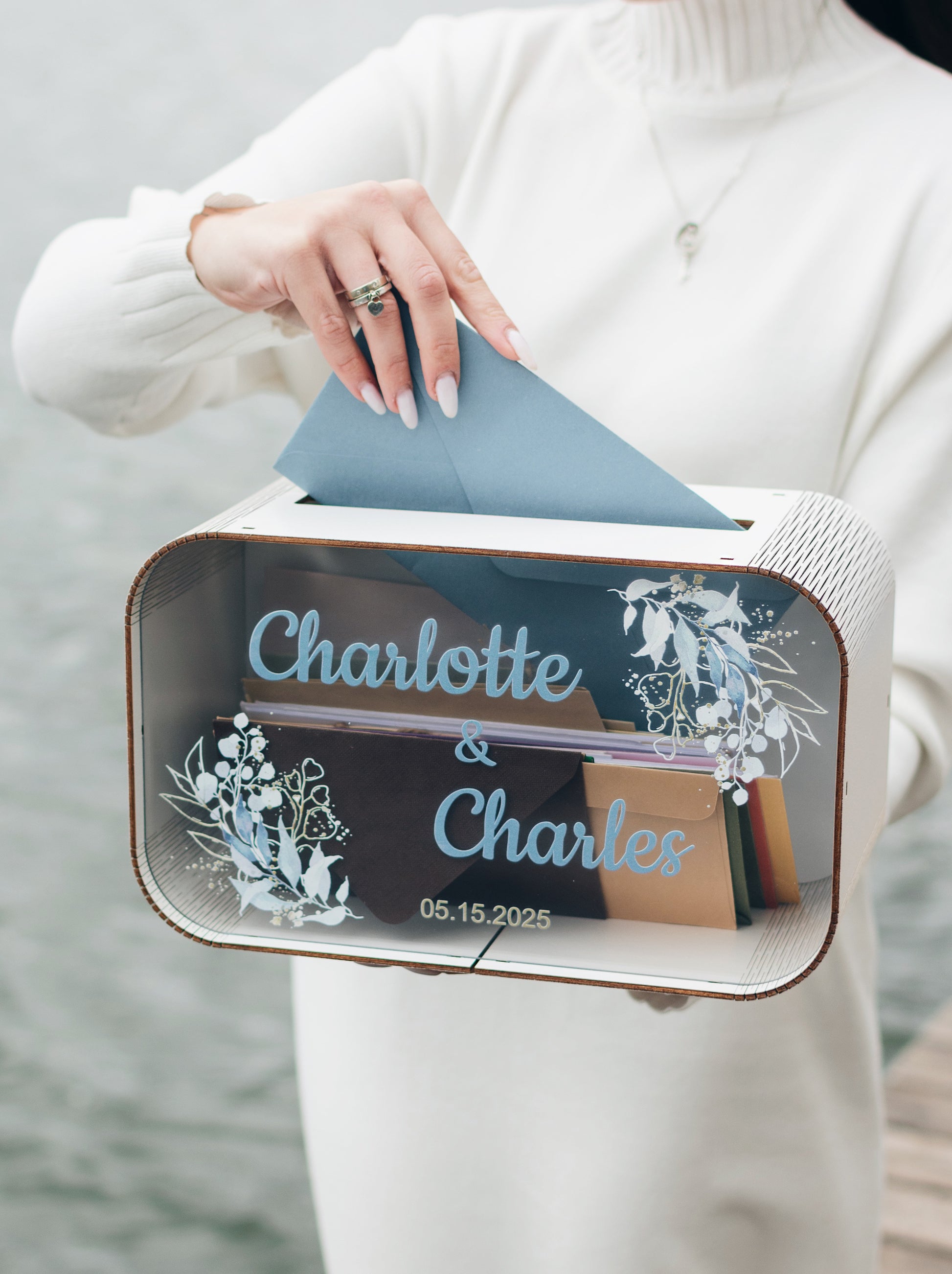 Our personalized Wood Card Box in rustic style will help you to complement and decorate your wedding.