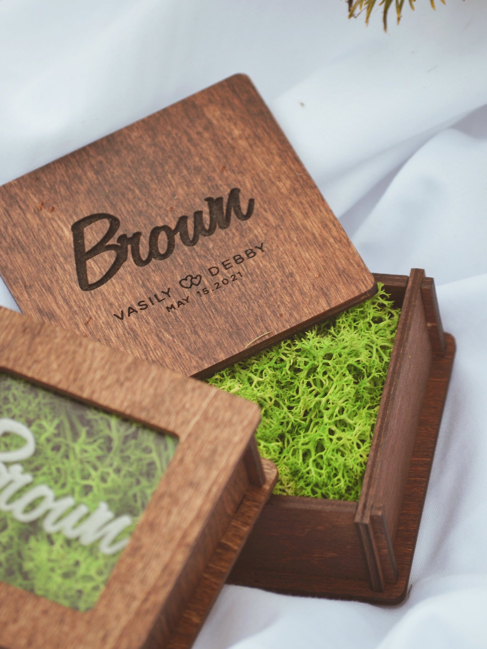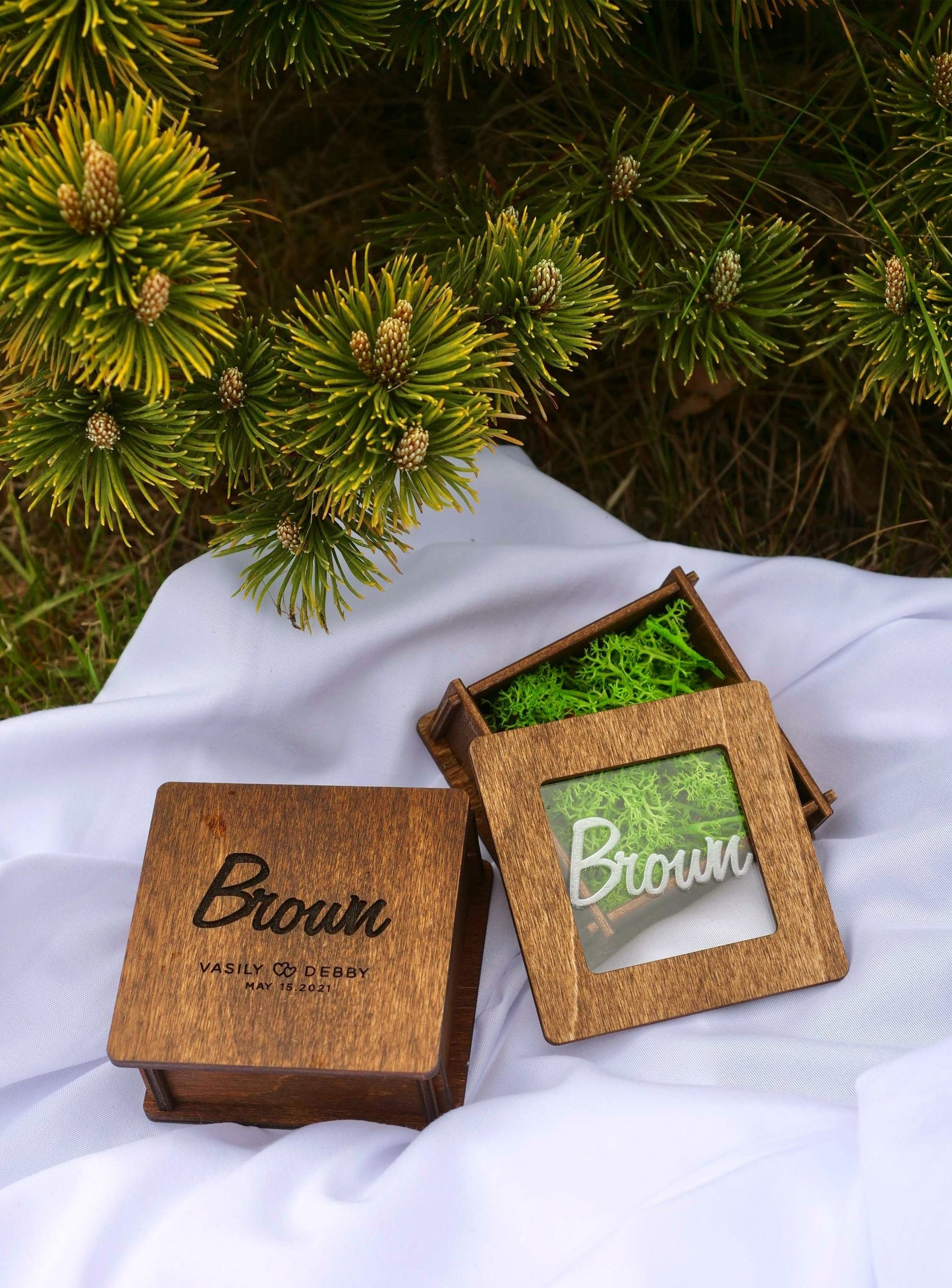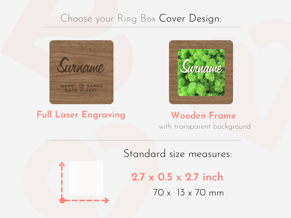 These boxes are perfect for keeping your rings safe on your big day. It can be a personalized variety of designs and custom text.