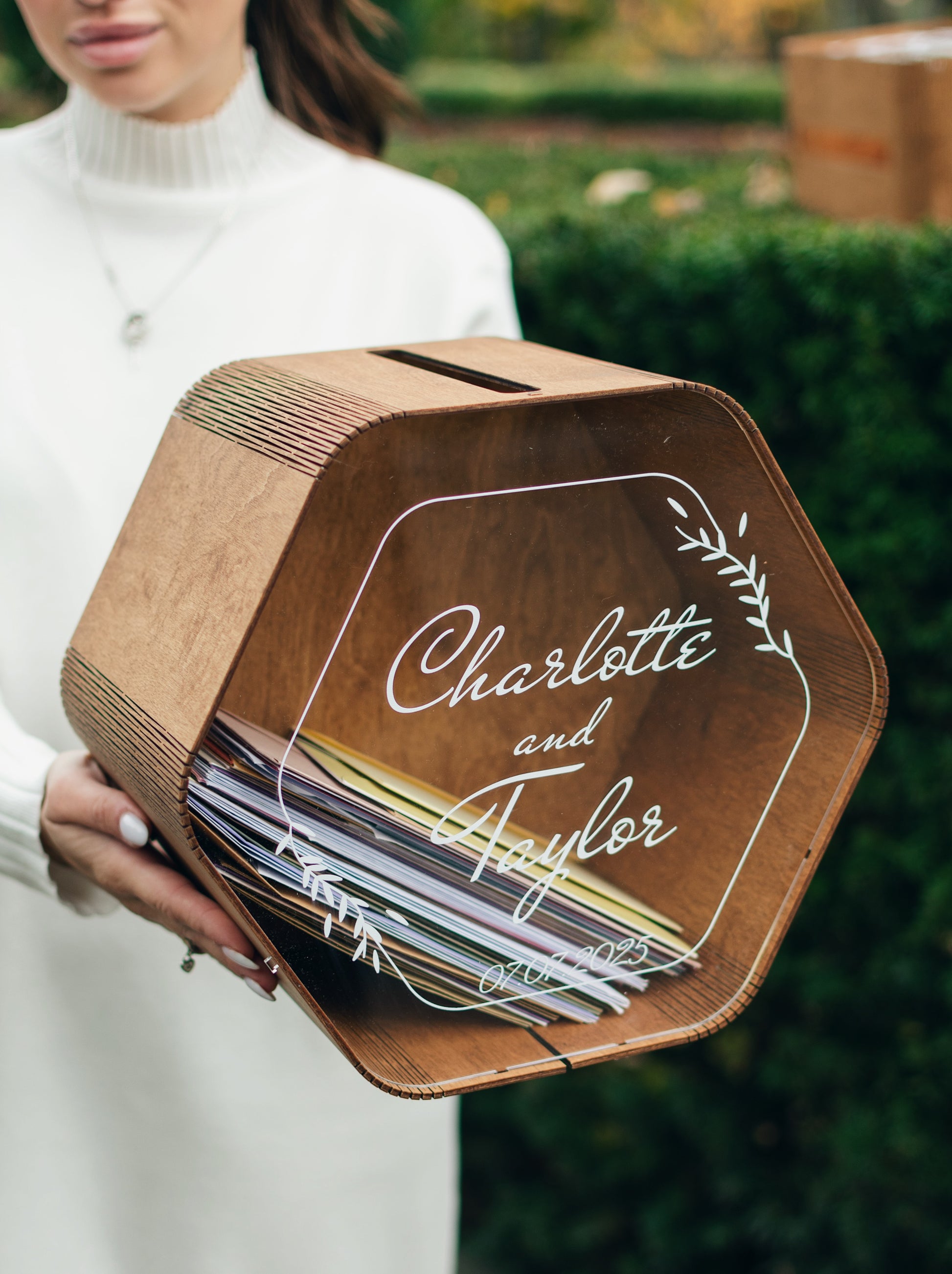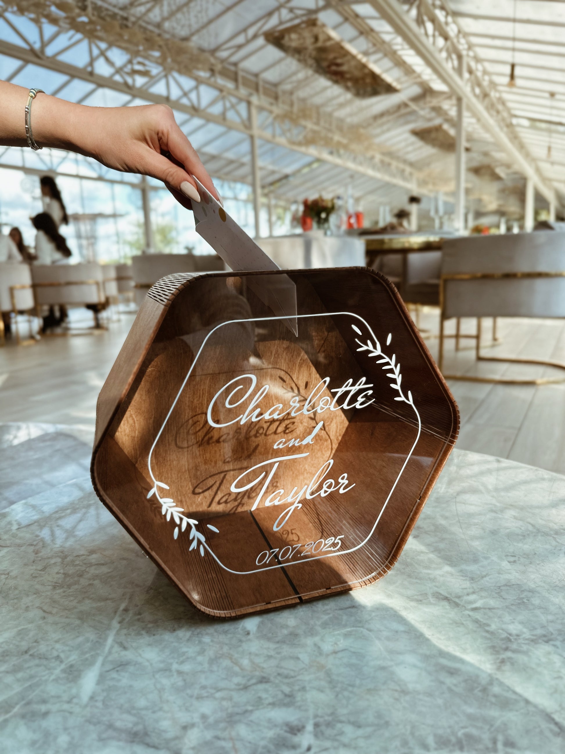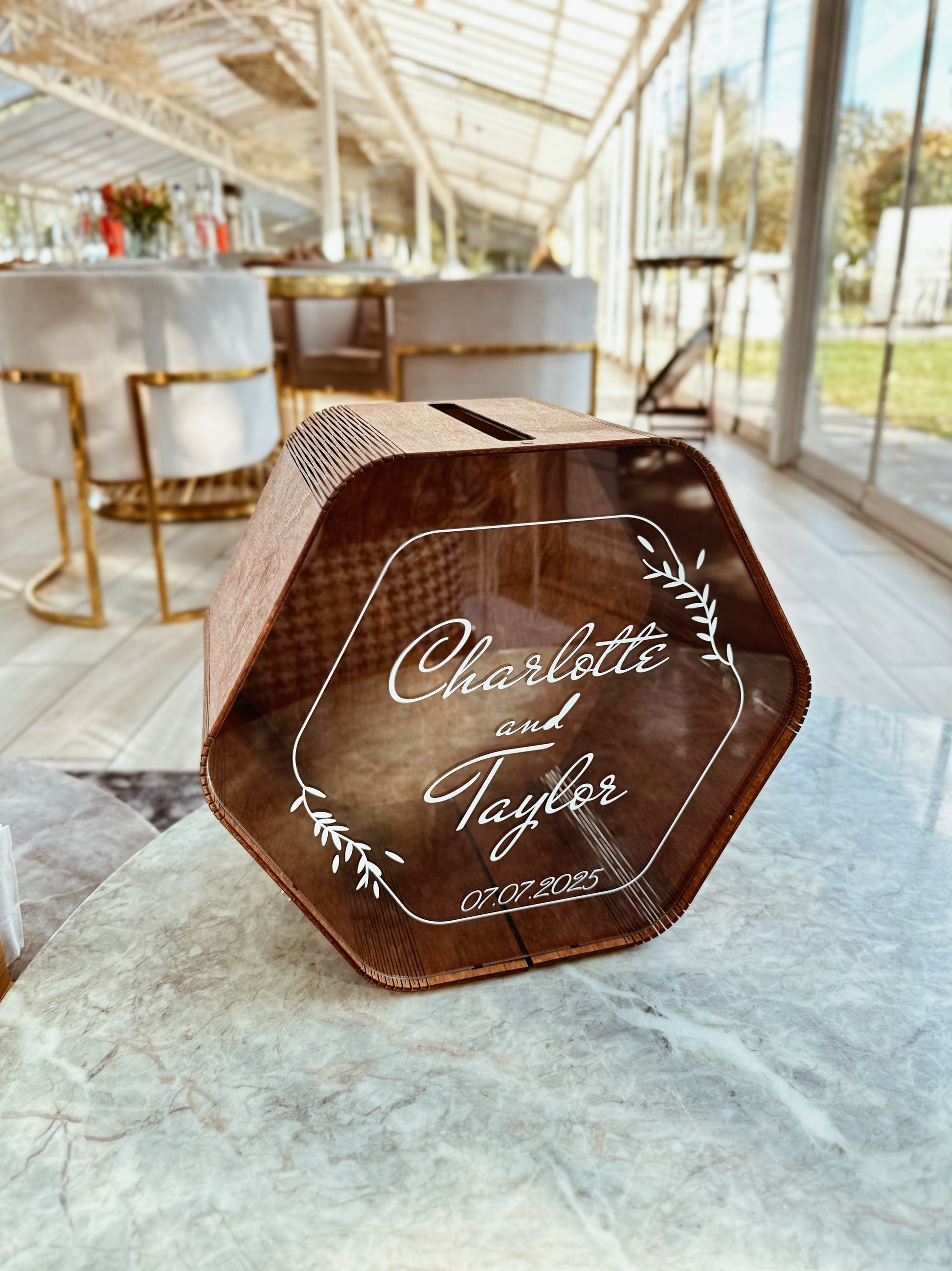 Wedding Card Box Wood Hexagon