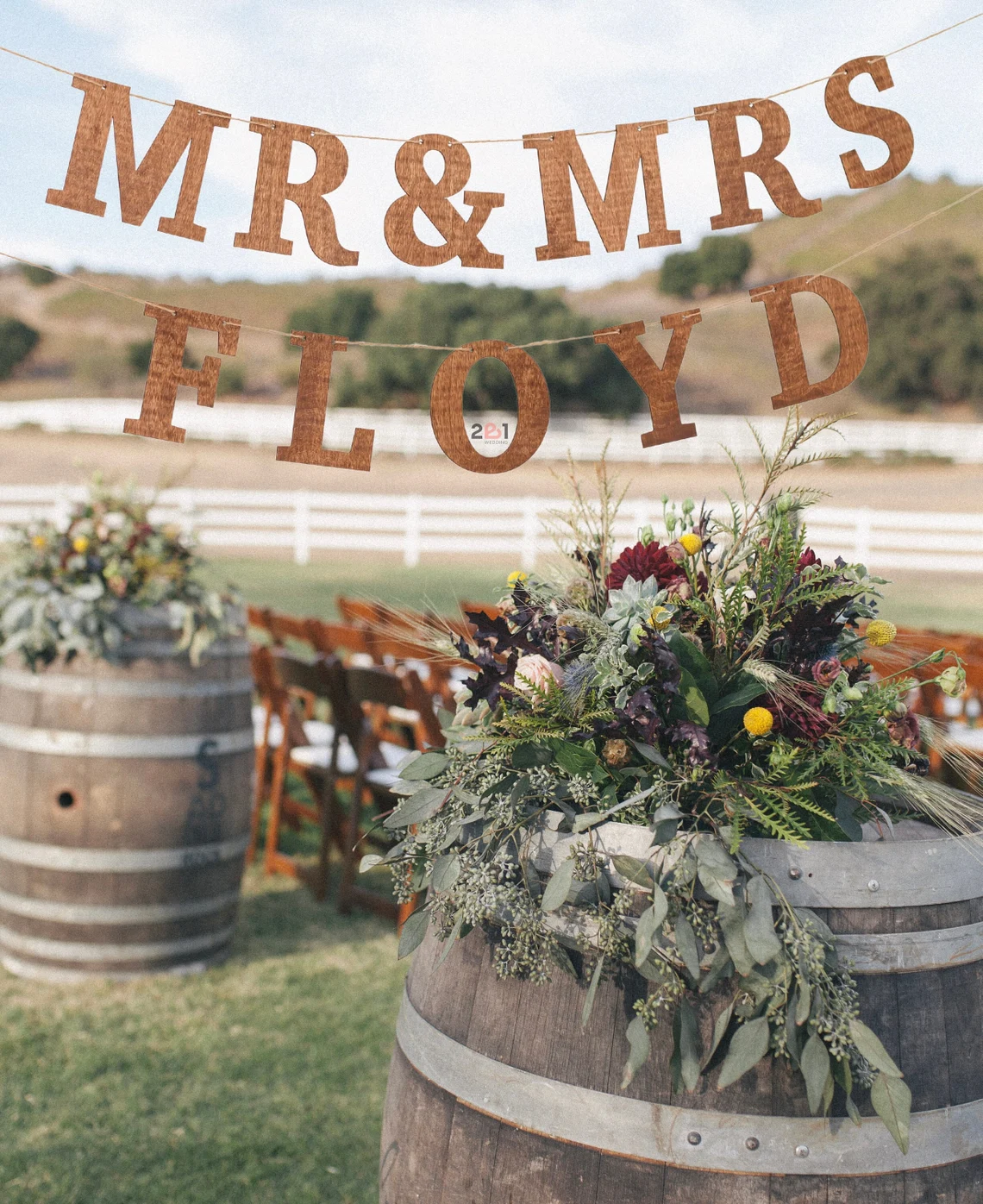 Wedding Garland - Mr and Mrs Wedding Sign, Hanging Letters - Rustic Bunting