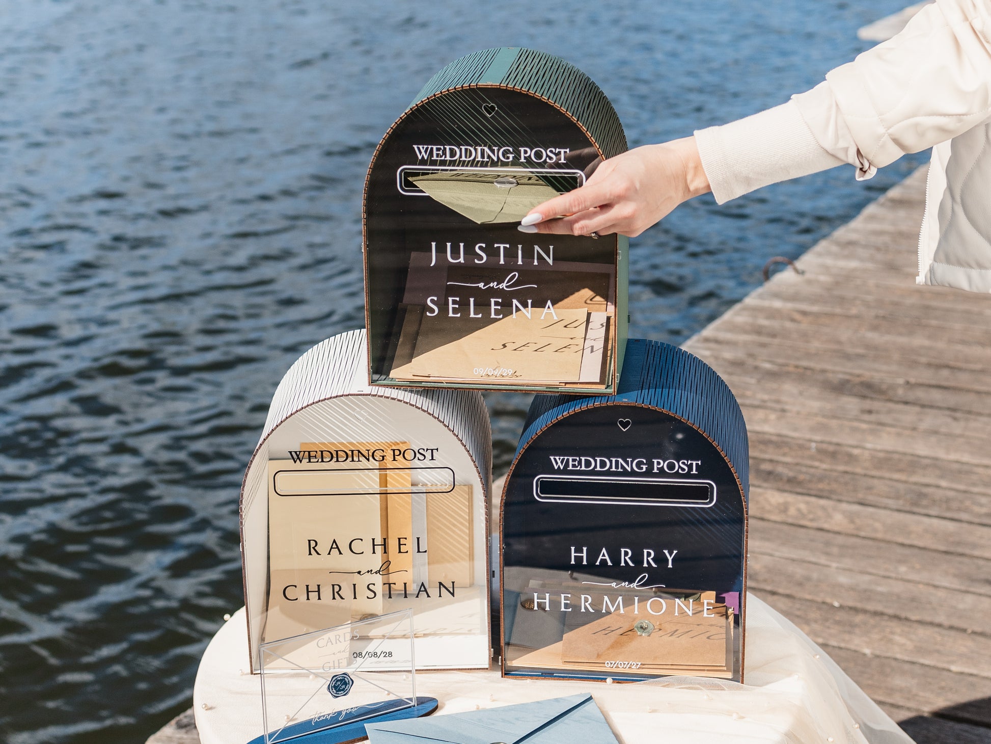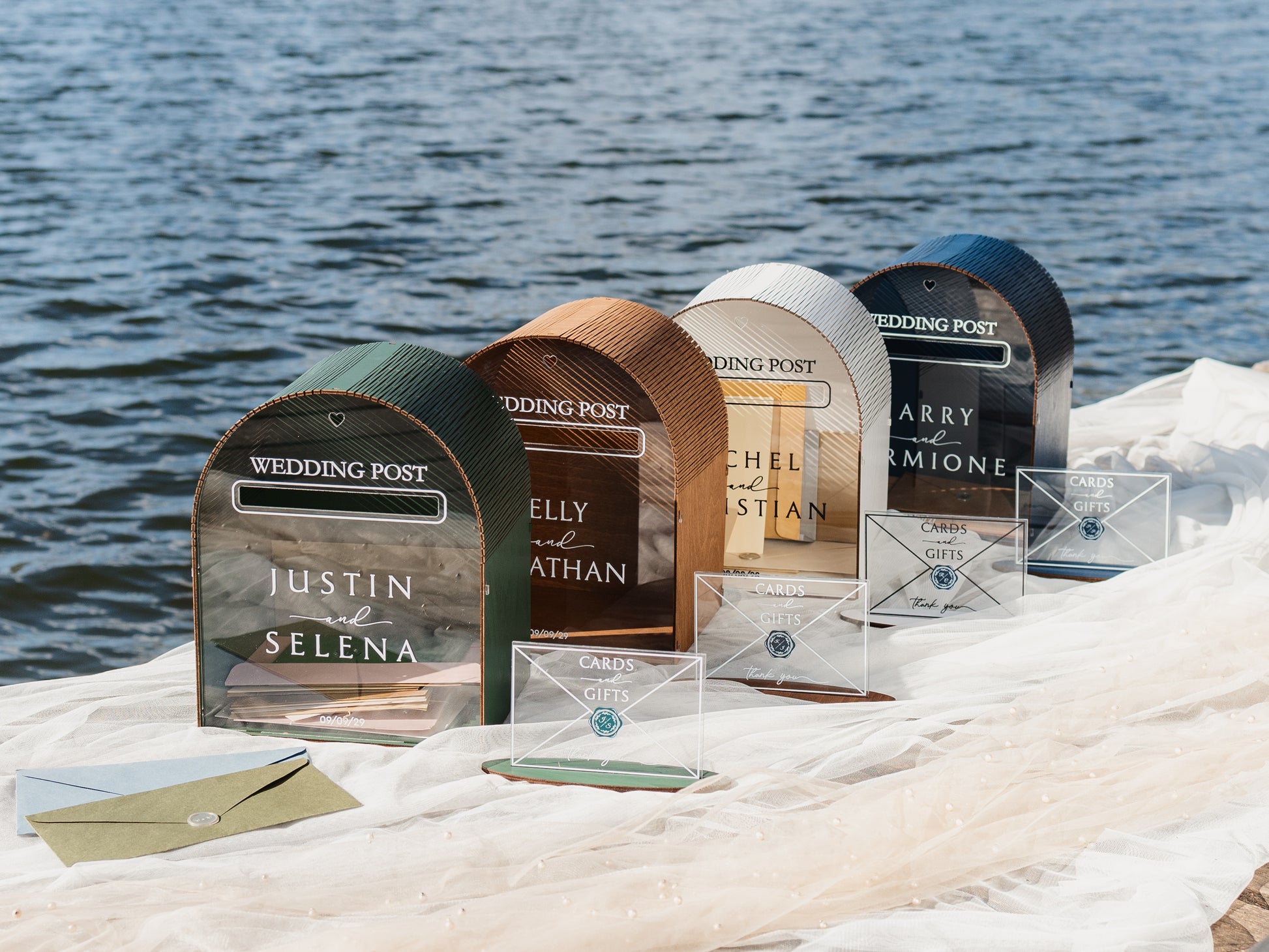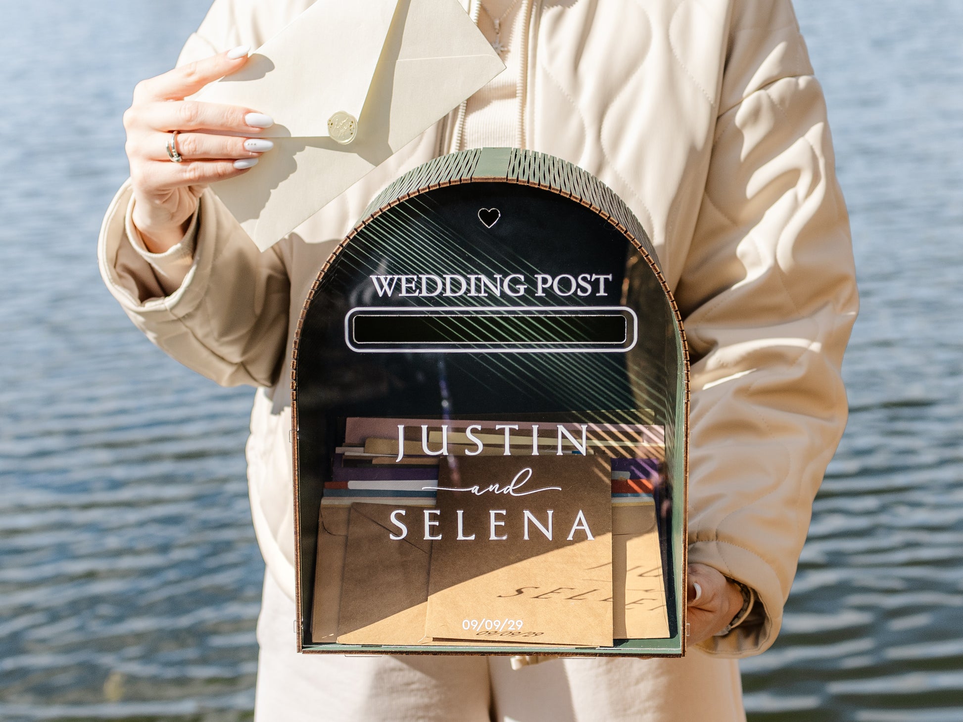 Wedding Post Card Box Wooden & Acrylic Reception Personalized Money Box for Cards 2b1Wedding Decor